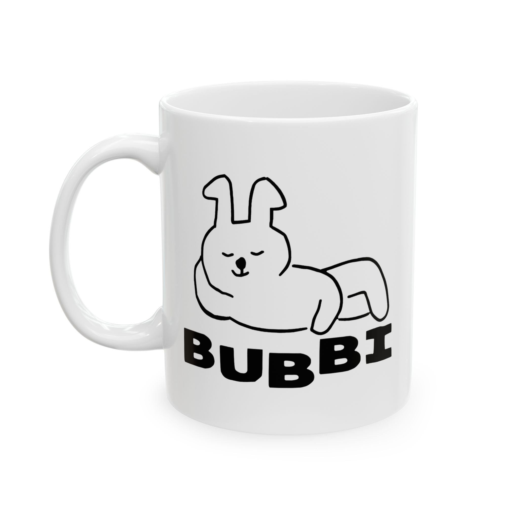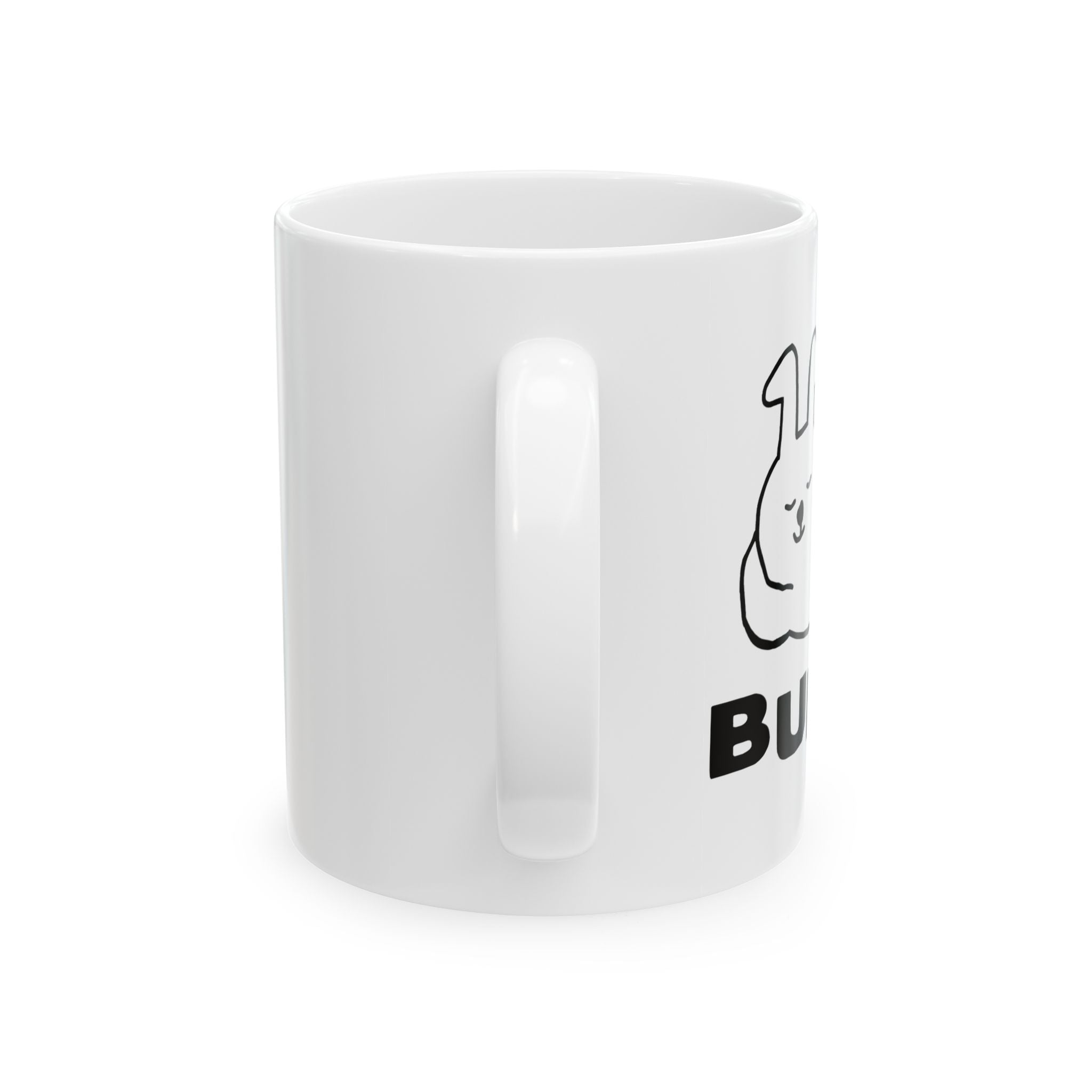 - Glossy white ceramic with comfortable C-handle